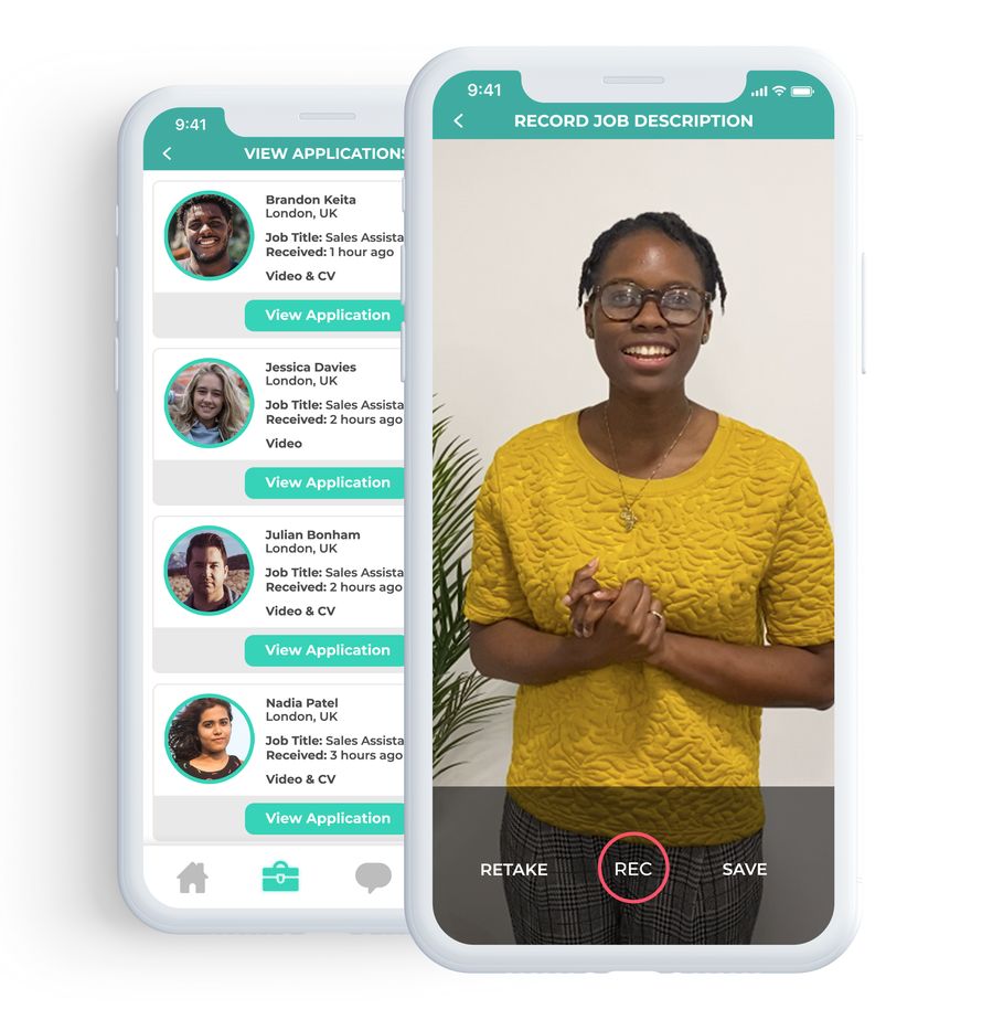 Find and hire great candidates quickly and efficiently. Receive 60-second video applications from motivated candidates, who introduce themselves before answering your questions. Recruitment has never been easier!